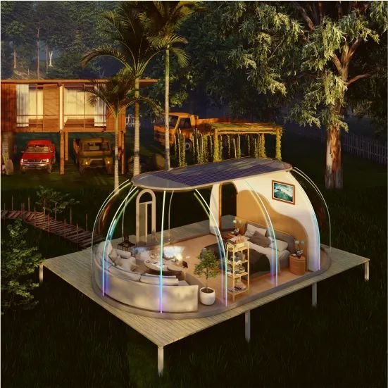Garden Pearl Domes — also known as Panoramic Sitting Domes — are smaller domes designed for luxury outdoor seating, cafés, and relaxation zones.
